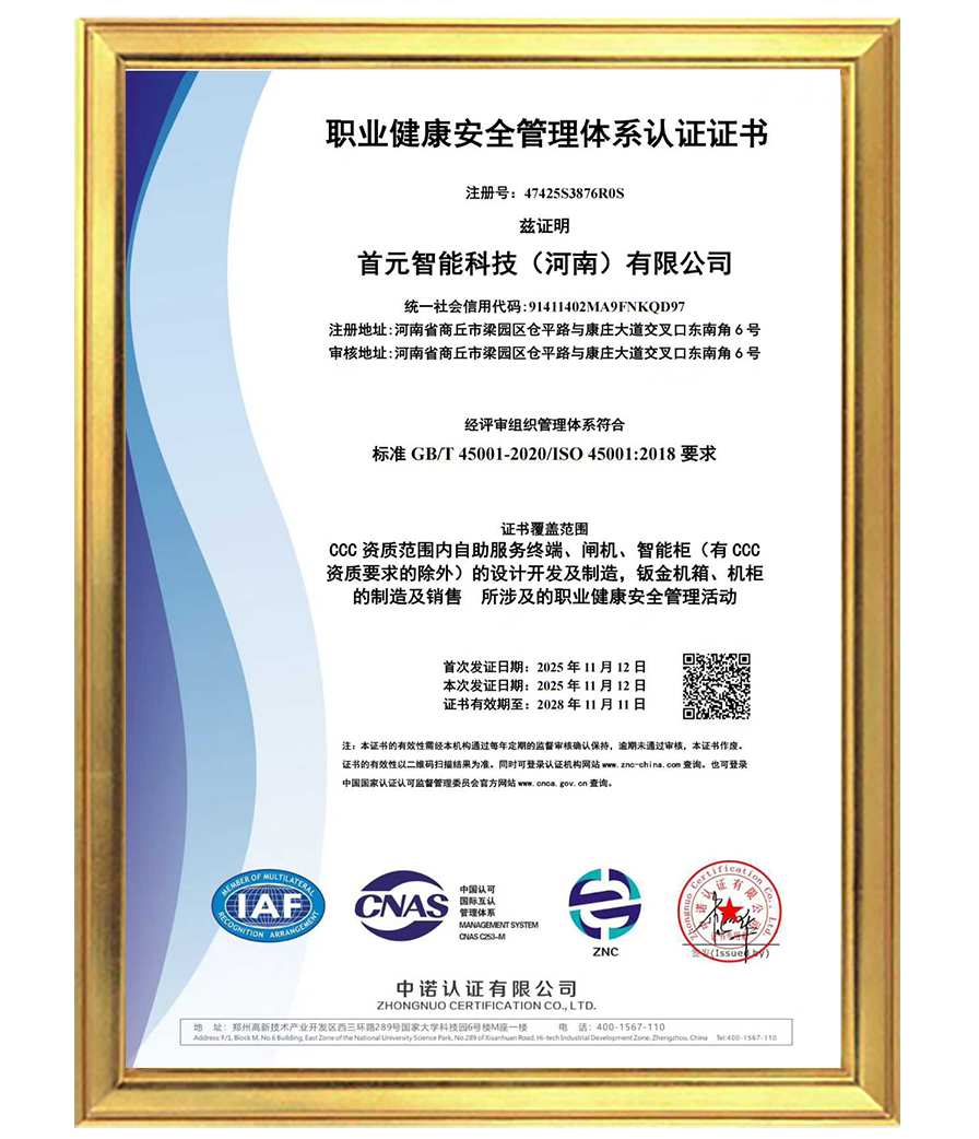 首元智能科技(河南)有限公司,位于全国性综合交通枢纽 、国家历史文化名城、殷商文化起源地---商丘。 公司自2008年起致力于智能化硬件设备的研发制造,涉及新能源/金融/医疗/税务/公检法/交通/车管所/不动产/图书馆等多个领域;拥有行业丰富的研发、设计、生产经验。 公司自建产业园;拥有自主经营的钣金基地+喷涂基地+电装基地+设计中心+包装中心+亚克力加工中心等配套产业链。