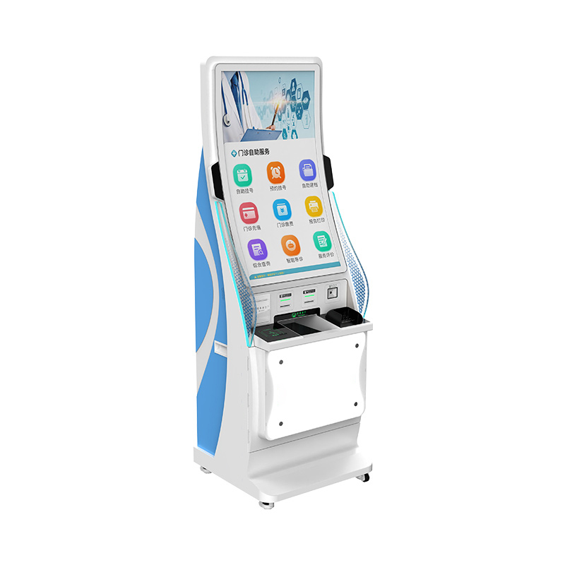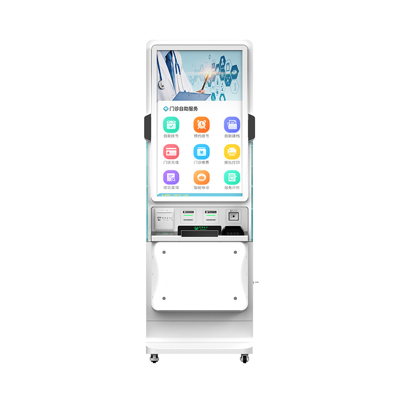 银医通自助服务终端,经典竖屏,支持语音导诊、人脸识别、移动支付、现金缴费、银联卡缴费、预约、挂号、发卡、报告打印、凭条打印,门诊/住院/检查全场景服务功能,为患者提供优质高效的一站式自助服务体验。